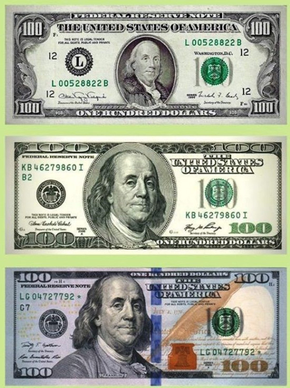 Los dólares han tenido diferentes billetes a lo largo del tiempo. Actualmente hay tres tipos de diseño diferentes en circulación.